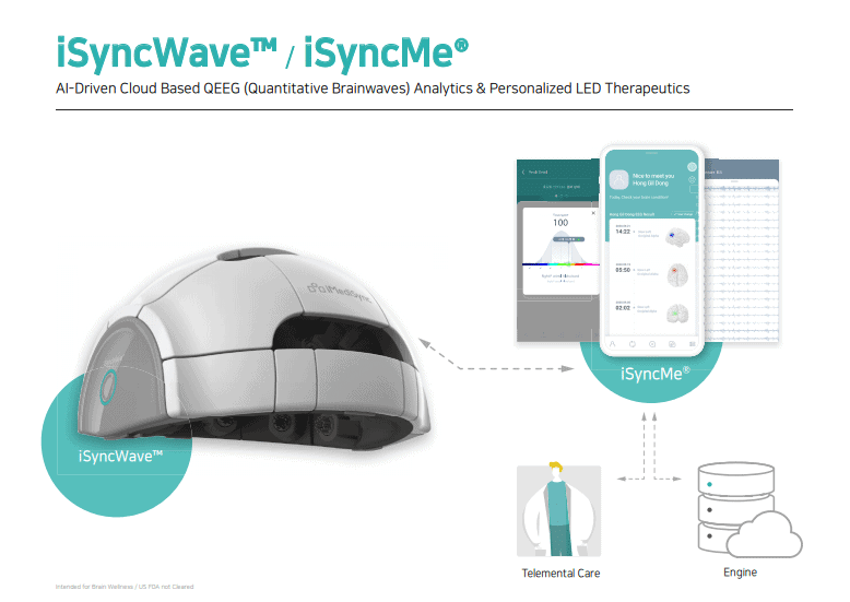 iMediSync claims they will tack the current mental pandemic and Corona Blue with its novel approach to biomarker development and personalized photobiomodulation therapy. iSyncWave™ is AI brain Mapping and personalized NIR-LED photobiomodulation therapy that will enhance neural activity; optimizing a person’s brain. This will accessible not only at your doctor’s clinic, but at the comfort of your own home. The healthcare professionals can provide their patients with a constant care when they are even at home.