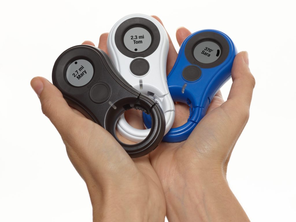 The weather-proof, clip-on device uses a proprietary software to display each users’ distance and direction from each other in